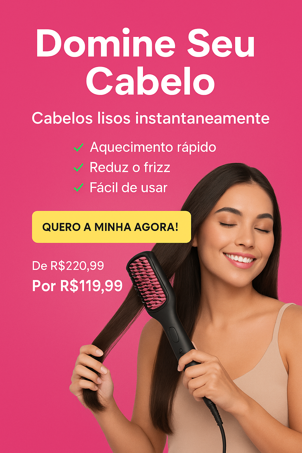 Transforme seu visual em minutos com a Escova Alisadora! ✨